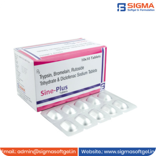 SINE-PLUS SINE-PLUS Trypsin 48mg + Bromelain 90mg + Rutoside 100mg Diclofenac Sod. 50mg Analgesic, Tablets 2,450.00