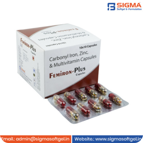 FEMIRON-PLUS FEMIRON-PLUS Carbonyl Iron 100mg with Folic Acid1.5mg, vitamin B12 15mcg & Zinc Sulphate 16.8mgwith Vitamin C 75mg Capsules, G.P, Gynae 600.00