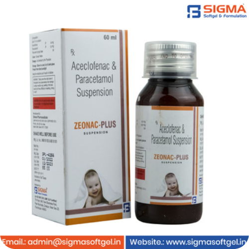 ZEONAC-PLUS 60 ML ZEONAC-PLUS 60 ML Aceclofenac 50mg + &Paracetamol 125mg Suspension Analgesic, Syrup 55.00