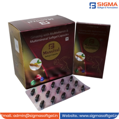 Placeholder MANVITAL PLUS S/G Ginseng Dry Extract I.P. 43.5 mg, (Highly concentrated & standardized, Ginseng Dry Extract Corresponding to 217.5 mg of Panax Ginseng) Niacinamide I.P. 25 mg, Vitamin B6 I.P. 1 mg, Mecobalamin I.P. 500 mcg, Vitamin D3 200 IU, Folic Acid 0.15 mg, Dibasic Calcium Phosphate I.P. Eq. to Elemental Calcium 75 mg, & Elemental Phosphorous 58 mg Ferrous Fumarate I.P. 30 mg, Zinc Sulphate Monohydrate I.P. 10 mg, Magnesium Sulphate I.P. Eq. to Elemental Magnesium 3 mg, Manganese Sulphate B.P. Eq. to Elemental Manganese 0.5 mg, Copper Sulphate Pentahydrate B.P Eq. to Elemental Copper 0.5 mg, Potassium Iodine I.P. Eq. to Elemental Iodine 0.1 mg, Potassium Sulphate B.P. Eq. to Elemental Potassium 2 mg Softgel, Supplement 1,300.00